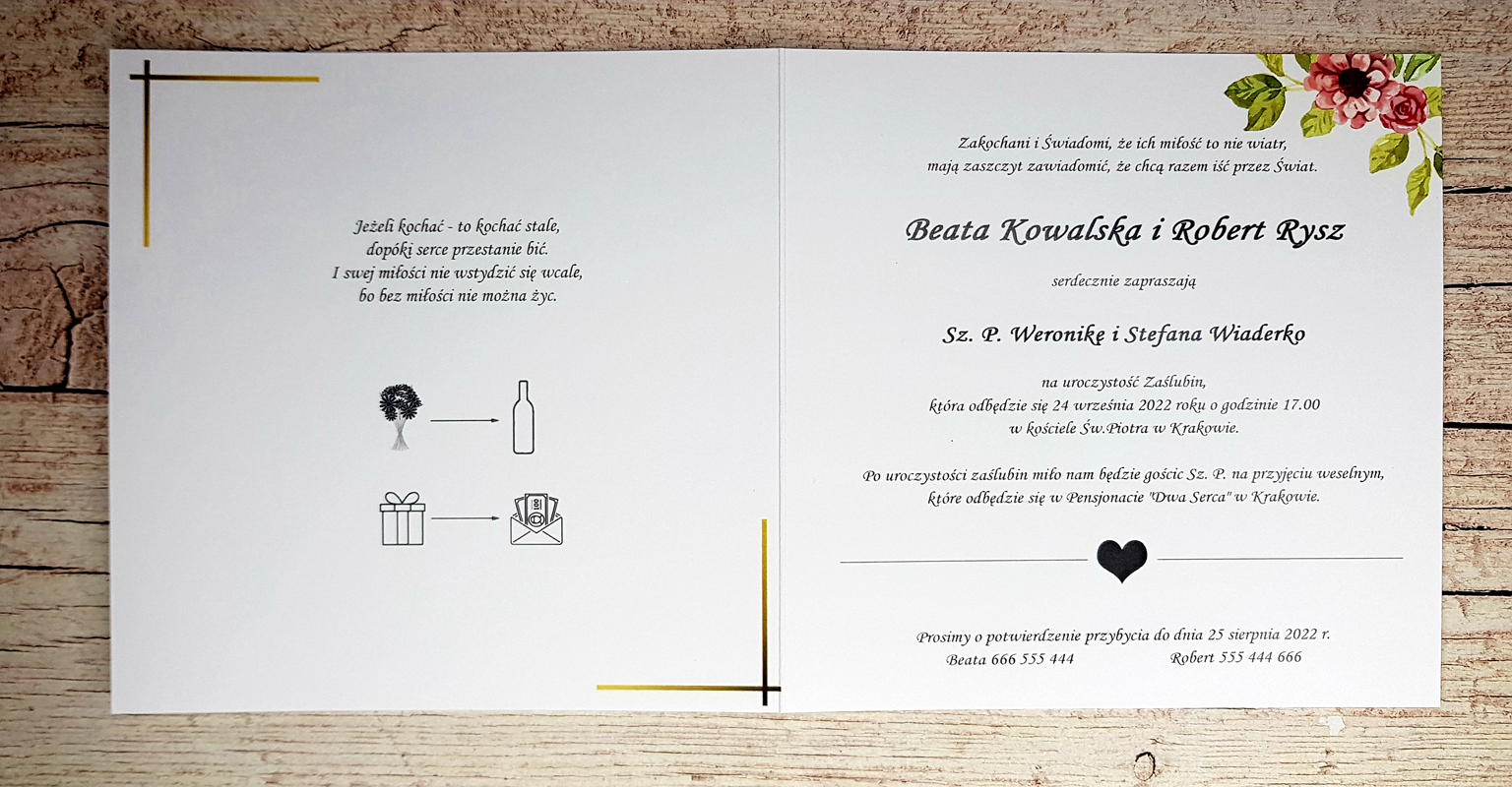 - Ze względu na różne ustawienia monitorów i urządzeń, kolory zaproszeń mogę nie znacznie odbiegać od rzeczywistych