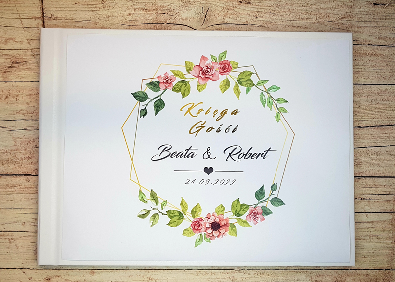 - Grafika jest drukowana cyfrowo i naklejana na księgę gości.