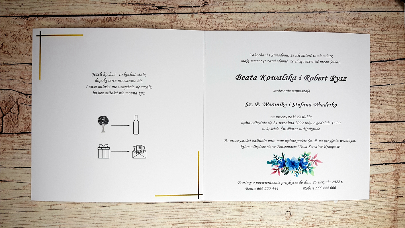 - Ze względu na różne ustawienia monitorów i urządzeń, kolory zaproszeń mogę nie znacznie odbiegać od rzeczywistych