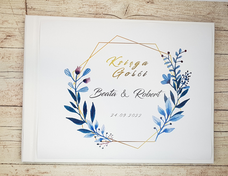 - Grafika jest drukowana cyfrowo i naklejana na księgę gości.