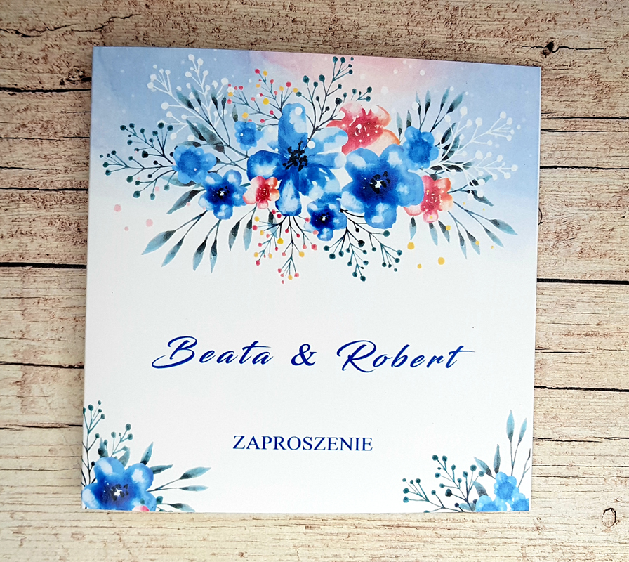 - Cyfrowy druk zaproszenia na wybranym rodzaju papieru w formacie 135 mm x 135 mm (złożone), 135 mm x 270 mm (rozłożone)