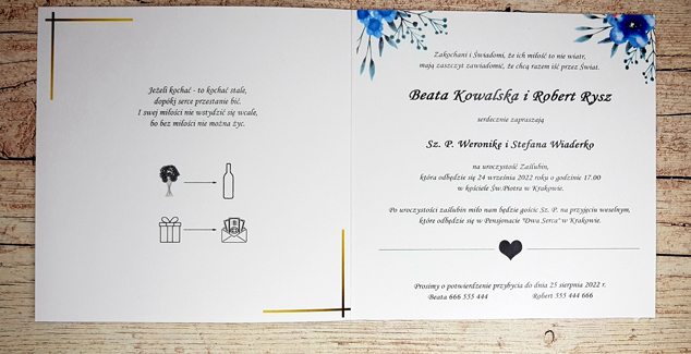 - Ze względu na różne ustawienia monitorów i urządzeń, kolory zaproszeń mogę nie znacznie odbiegać od rzeczywistych
