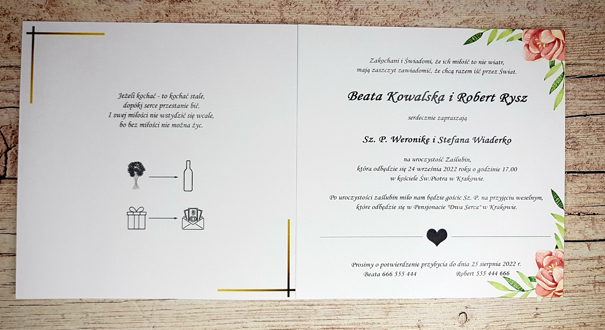 - Ze względu na różne ustawienia monitorów i urządzeń, kolory zaproszeń mogę nie znacznie odbiegać od rzeczywistych