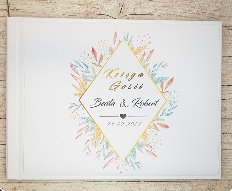 - Grafika jest drukowana cyfrowo i naklejana na księgę gości.