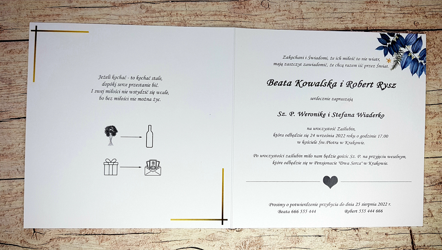 - Ze względu na różne ustawienia monitorów i urządzeń, kolory zaproszeń mogę nie znacznie odbiegać od rzeczywistych