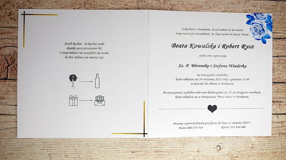 - Ze względu na różne ustawienia monitorów i urządzeń, kolory zaproszeń mogę nie znacznie odbiegać od rzeczywistych