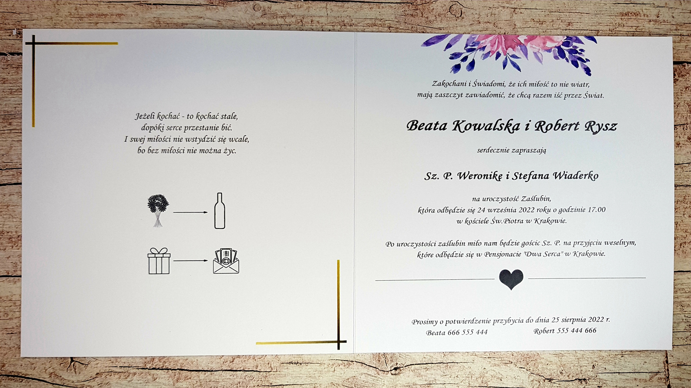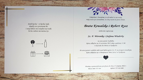 - Ze względu na różne ustawienia monitorów i urządzeń, kolory zaproszeń mogę nie znacznie odbiegać od rzeczywistych
