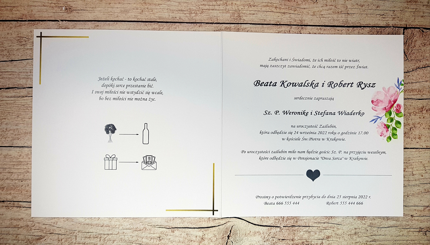 ZAPROSZENIA, ZAWIADOMIENIA NA ŚLUB Z PERSONALIZACJĄ I KOPERTĄ GRATIS