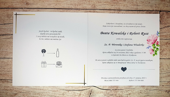 - Ze względu na różne ustawienia monitorów i urządzeń, kolory zaproszeń mogę nie znacznie odbiegać od rzeczywistych