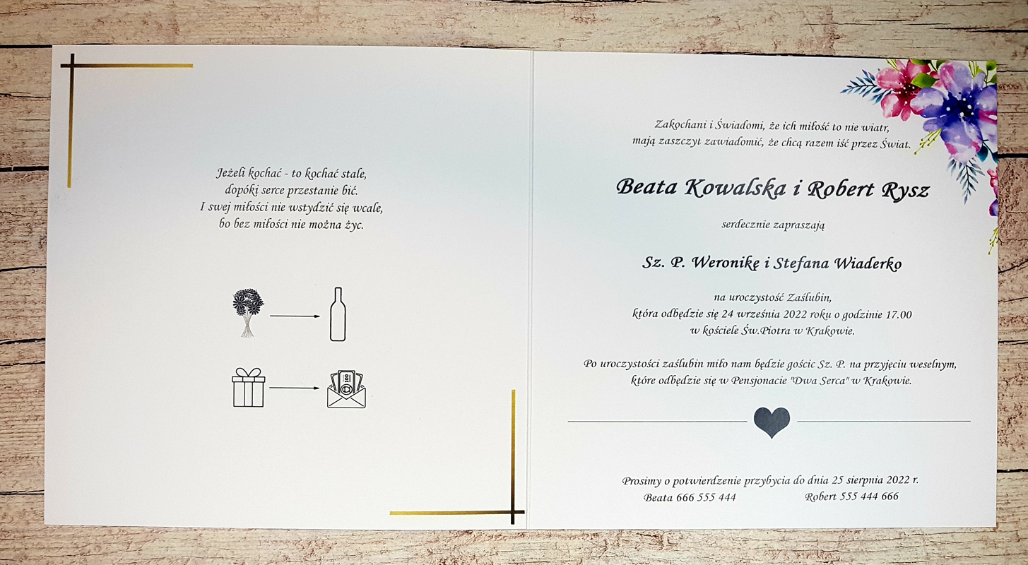 - Ze względu na różne ustawienia monitorów i urządzeń, kolory zaproszeń mogę nie znacznie odbiegać od rzeczywistych