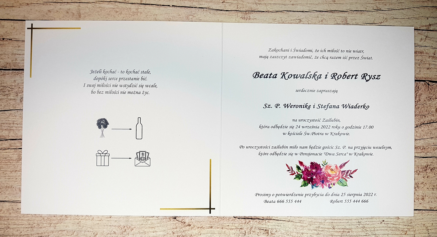 - Ze względu na różne ustawienia monitorów i urządzeń, kolory zaproszeń mogę nie znacznie odbiegać od rzeczywistych