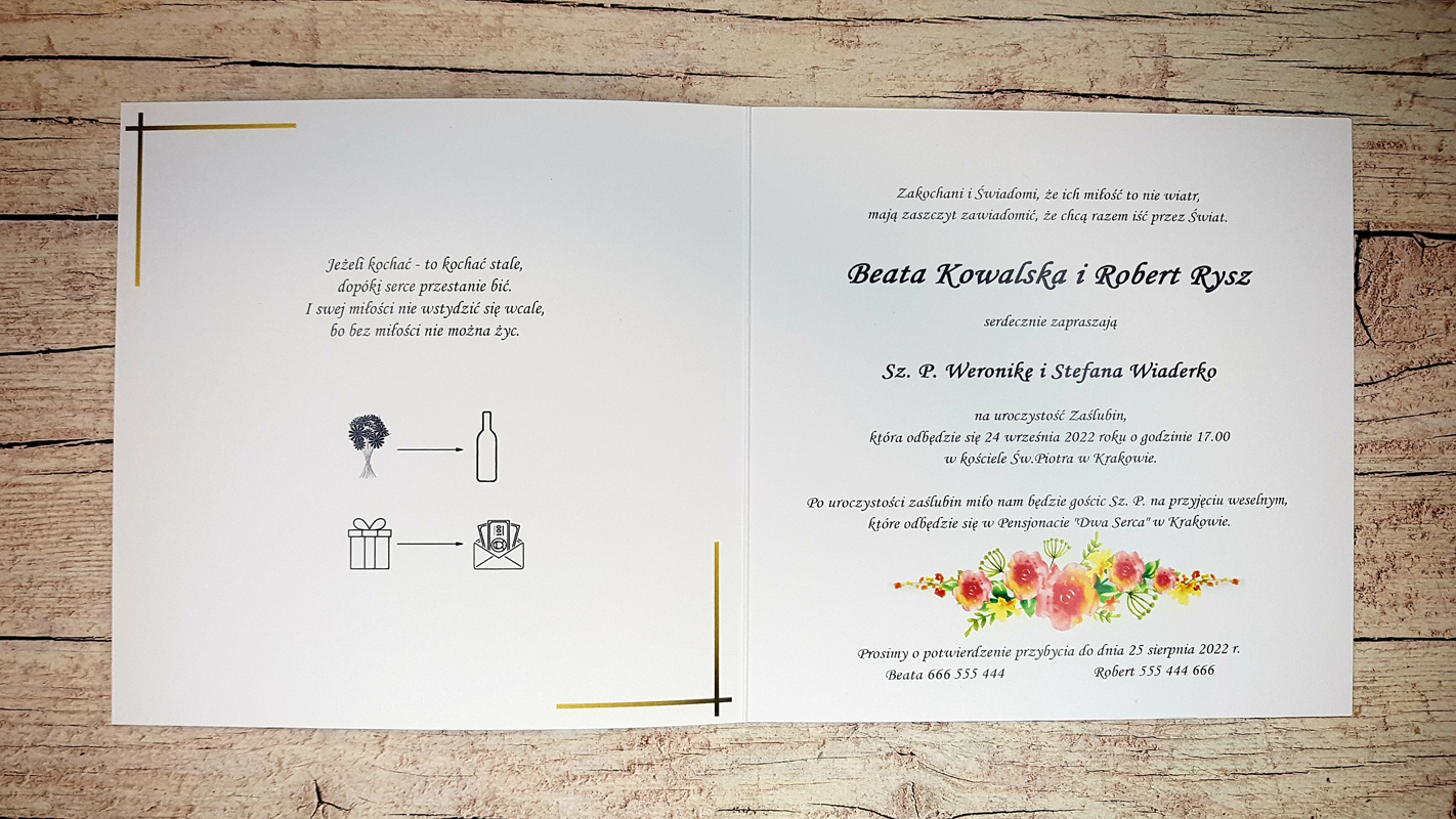 ZAPROSZENIA, ZAWIADOMIENIA NA ŚLUB Z PERSONALIZACJĄ I KOPERTĄ GRATIS