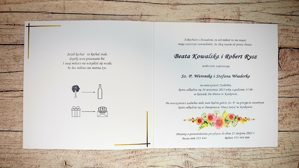 - Ze względu na różne ustawienia monitorów i urządzeń, kolory zaproszeń mogę nie znacznie odbiegać od rzeczywistych