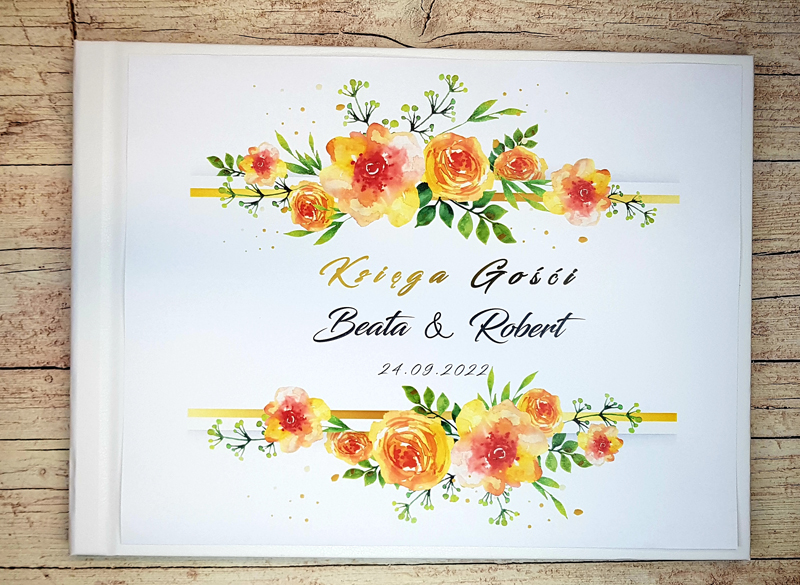- Grafika jest drukowana cyfrowo i naklejana na księgę gości.