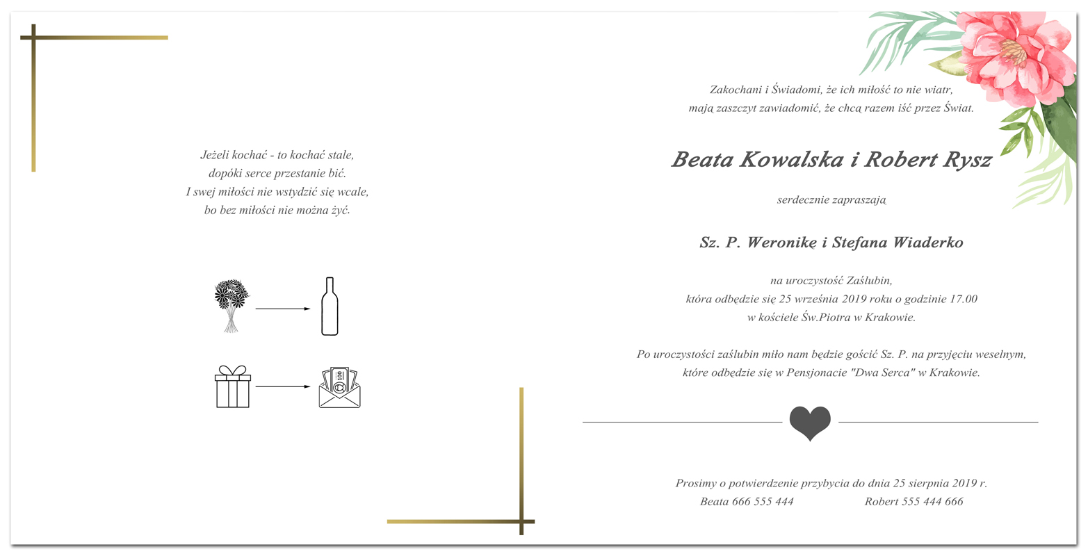 - Ze względu na różne ustawienia monitorów i urządzeń, kolory zaproszeń mogę nie znacznie odbiegać od rzeczywistych