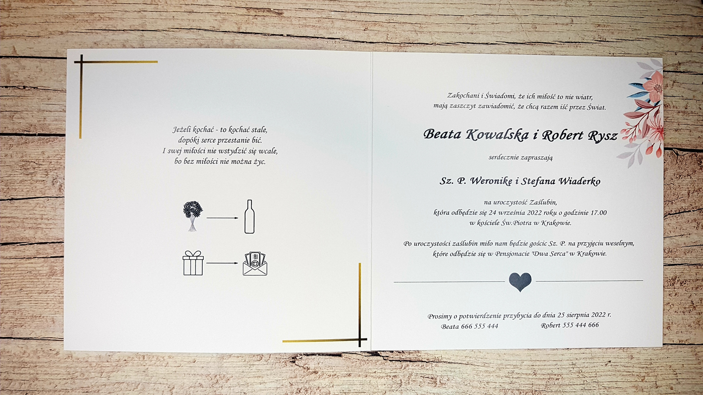 ZAPROSZENIA, ZAWIADOMIENIA NA ŚLUB Z PERSONALIZACJĄ I KOPERTĄ GRATIS