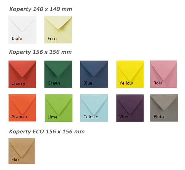 - Elegancka koperta dostosowana do zaproszenia 140 mm x 140 mm
