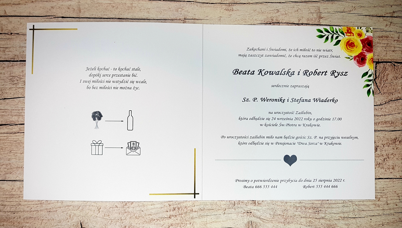 - Ze względu na różne ustawienia monitorów i urządzeń, kolory zaproszeń mogę nie znacznie odbiegać od rzeczywistych