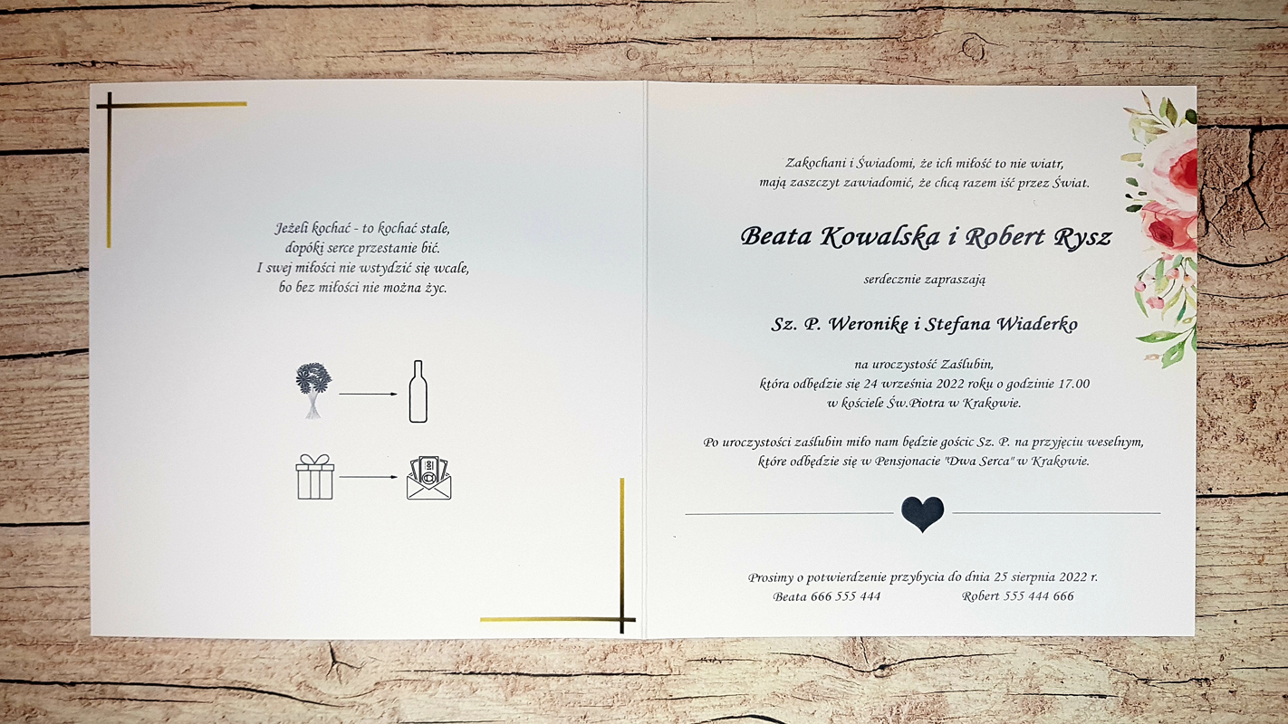 ZAPROSZENIA, ZAWIADOMIENIA NA ŚLUB Z PERSONALIZACJĄ I KOPERTĄ GRATIS